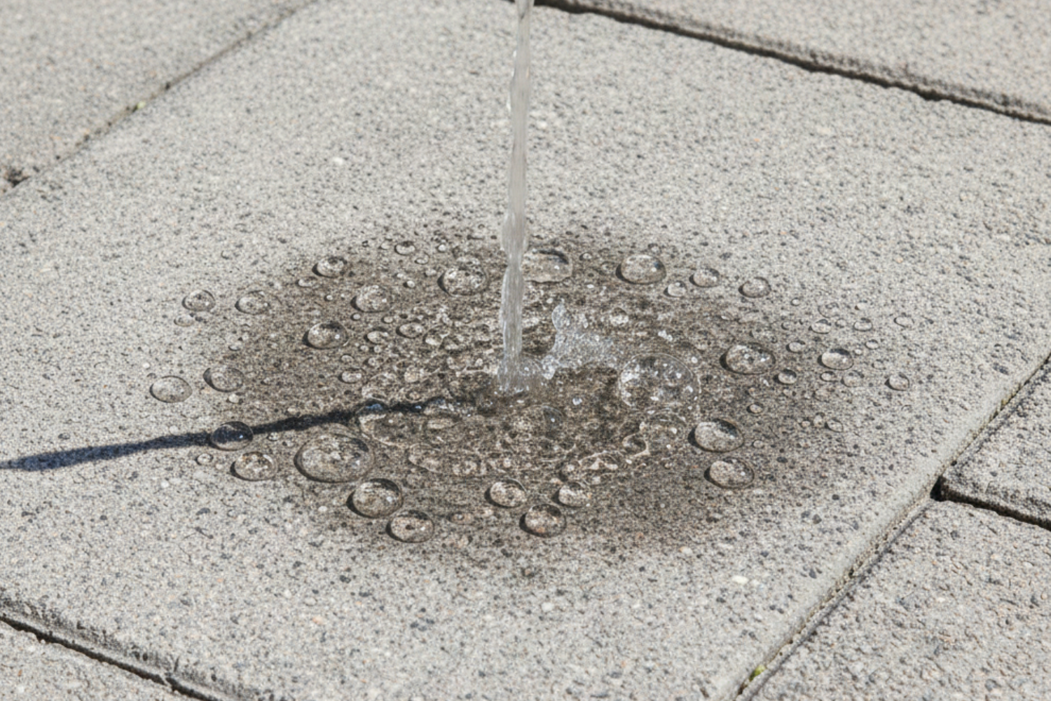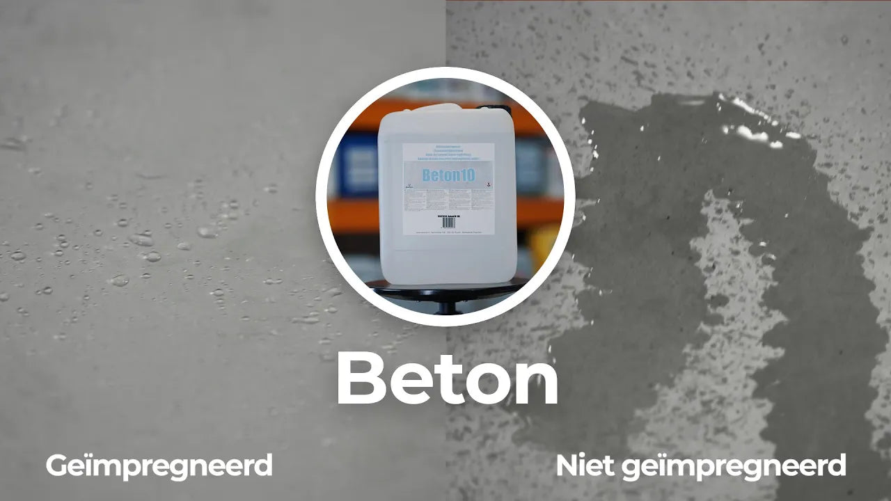 deze video laat het verschil zien tussen een wel geïmpregneerde betonvloer, en een niet geïmpregneerde betonvloer.