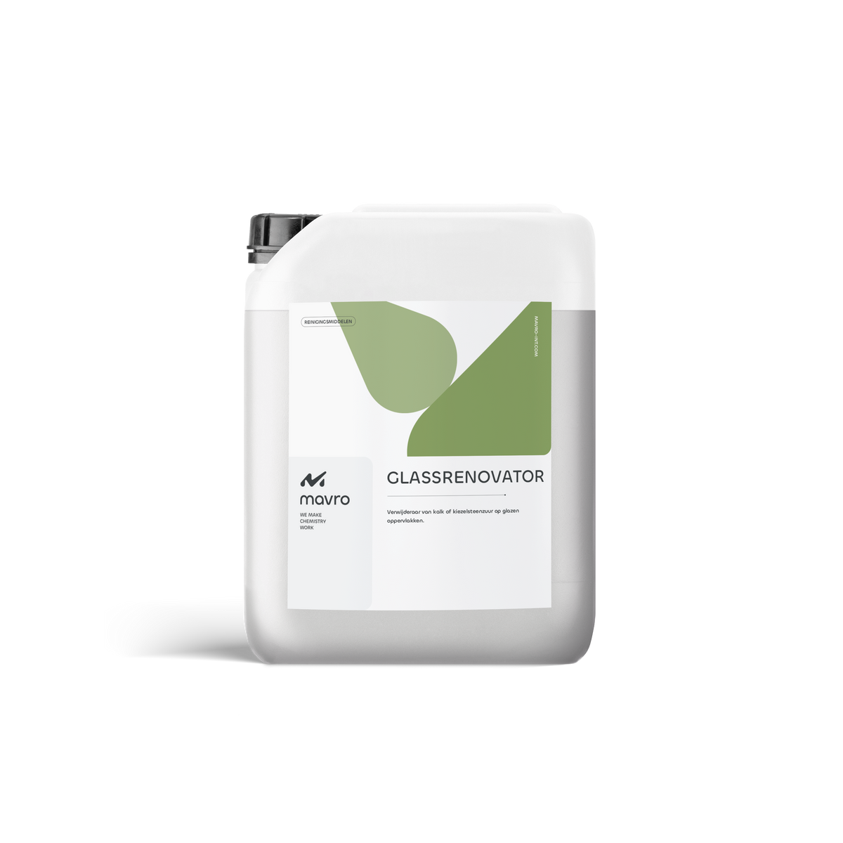 Glass Renovator is een zeer efficiënte zure reiniger voor het reinigen en ont-etsen van zwaar vervuild glas.