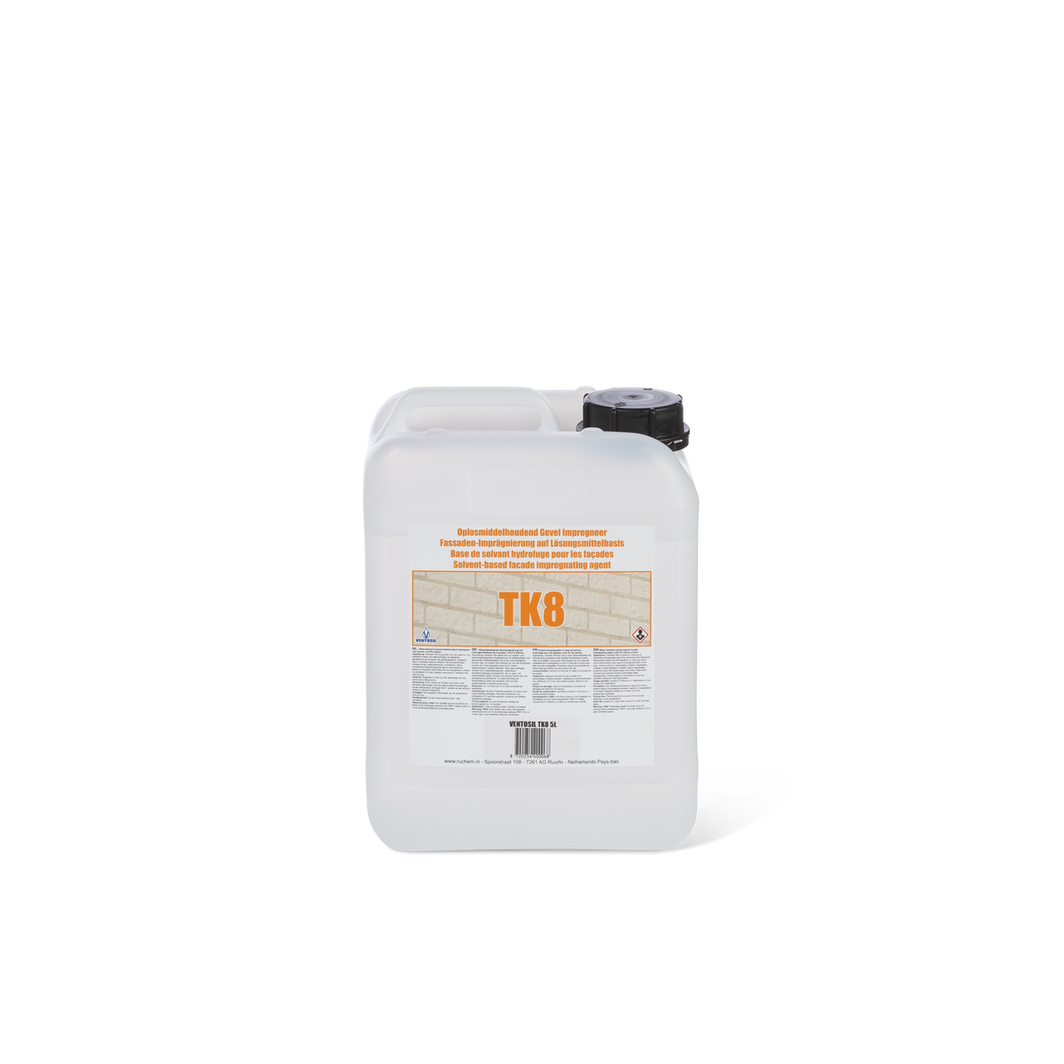 Ventosil TK8 oplosmiddelhoudend impregneermiddel. Ideaal voor het water- en vuilafstotend maken van kalkzandsteen en gebakken gevelstenen.